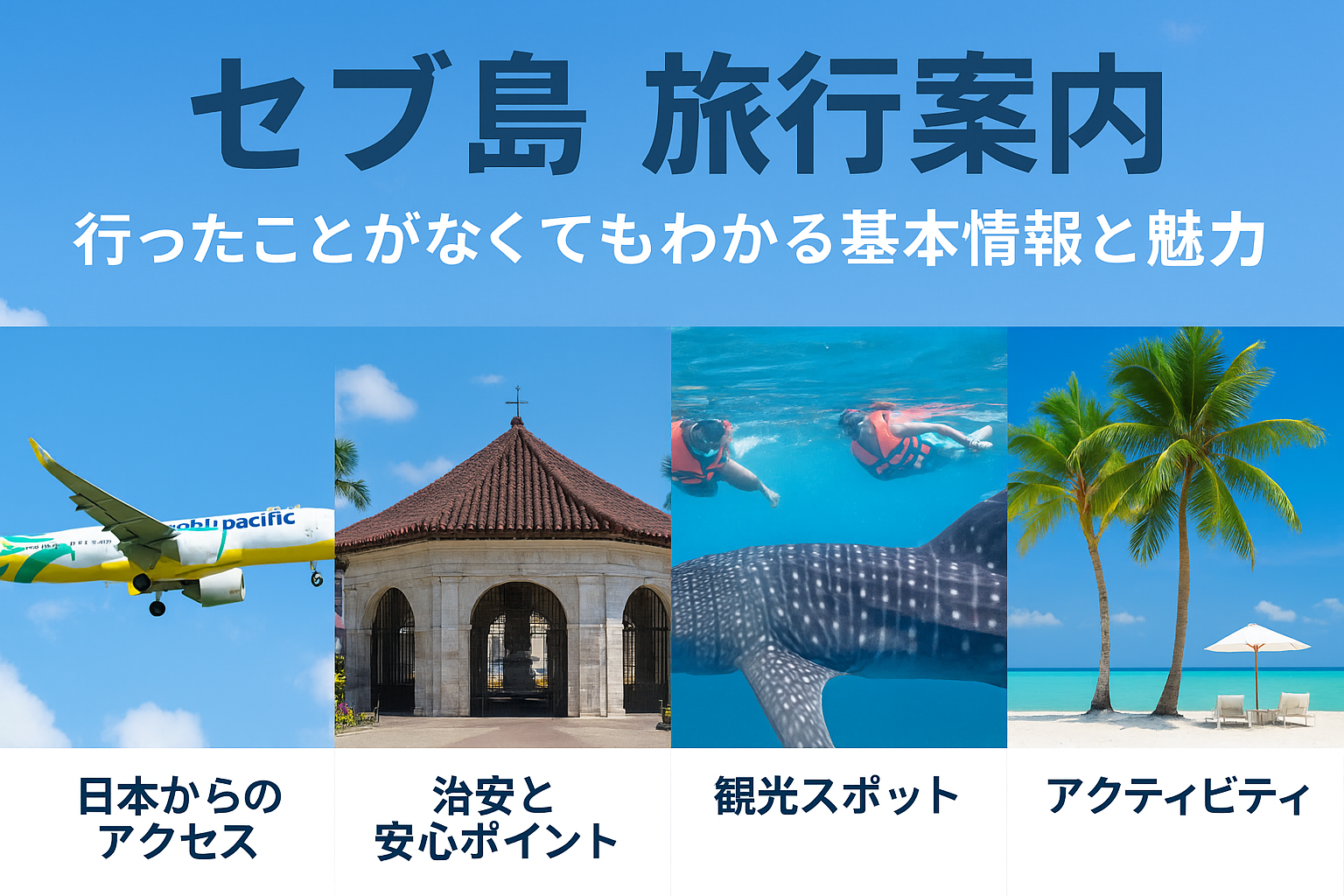 この記事では、日本からのアクセス方法、治安、観光スポット、グルメなどを徹底的にまとめました。これからセブ旅行を計画している方の参考になれば嬉しいです。