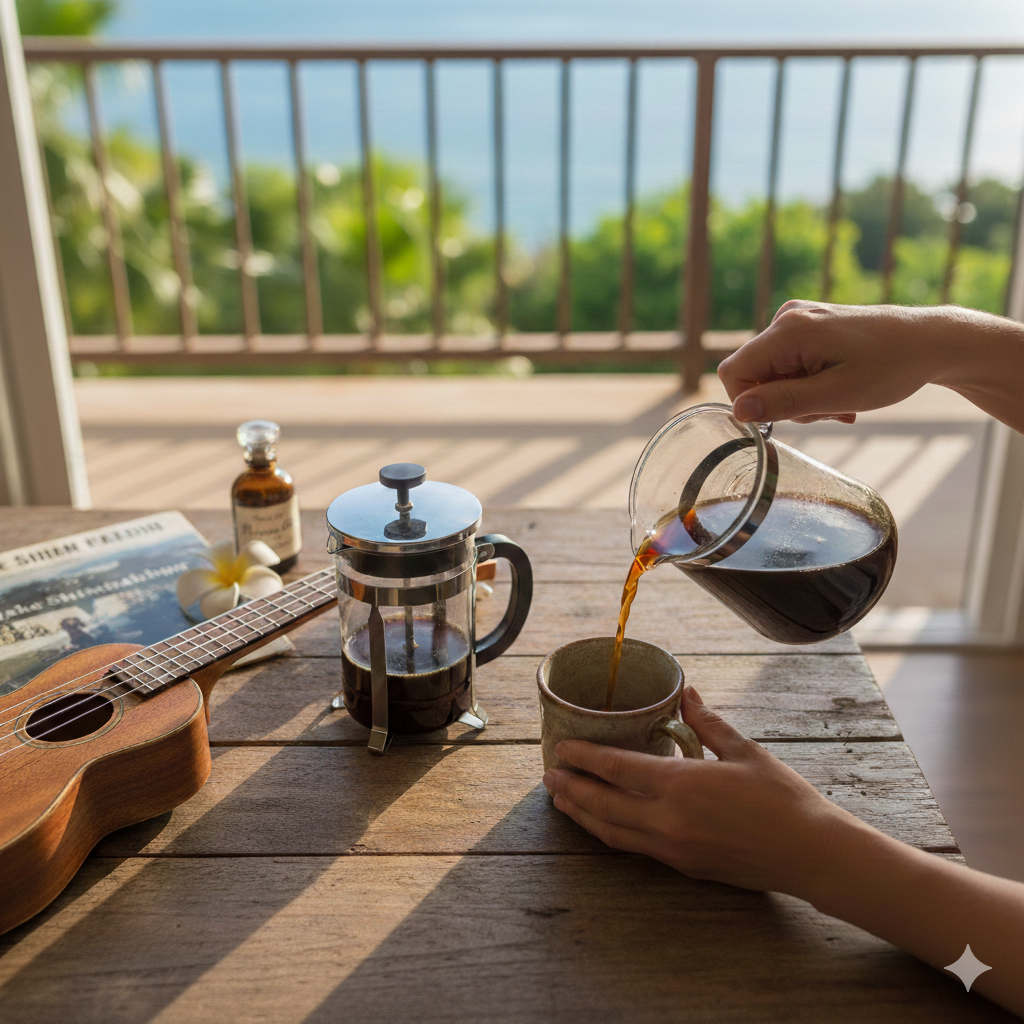 力強くて、でもどこか優しいあのリズムに身を任せていると、コーヒーの香りと相まって、いつの間にか心のトゲが丸くなっていくのがわかります。ハワイの爽やかな風が、部屋の中を吹き抜けていくような……そんな感覚になれるんですよね(笑)。